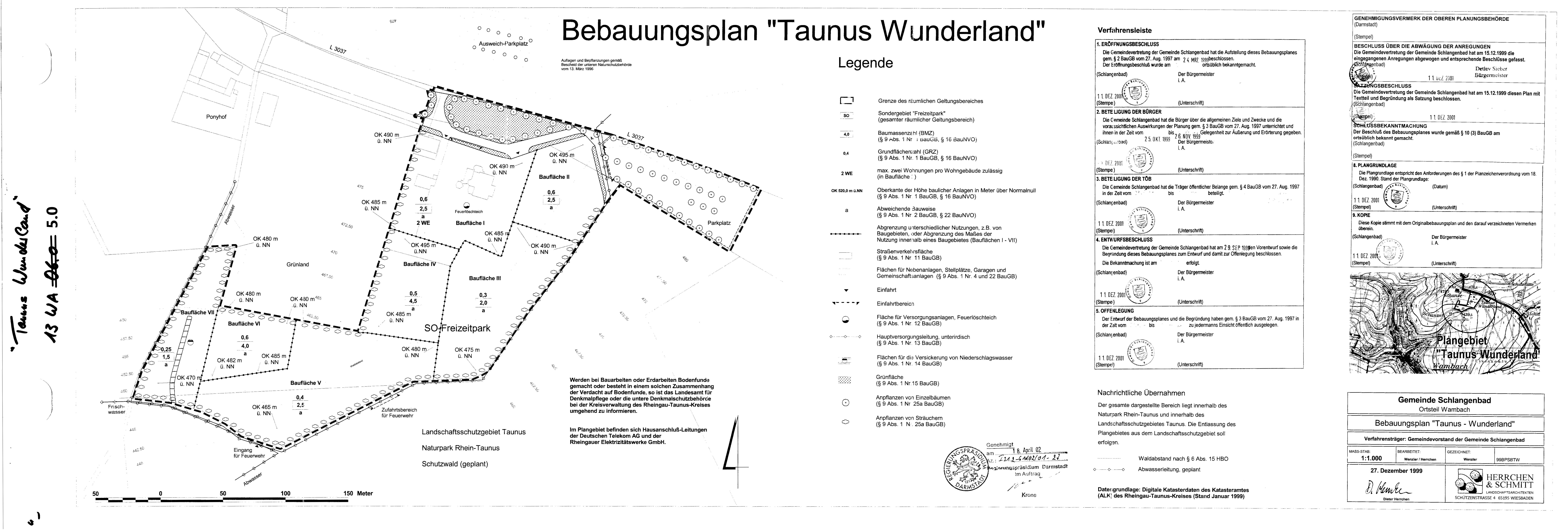 | Bebauungsplan mit integrierter Bausatzung WA 05.0 "Bebauungsplan Taunus Wunderland" (05.05.2002): |