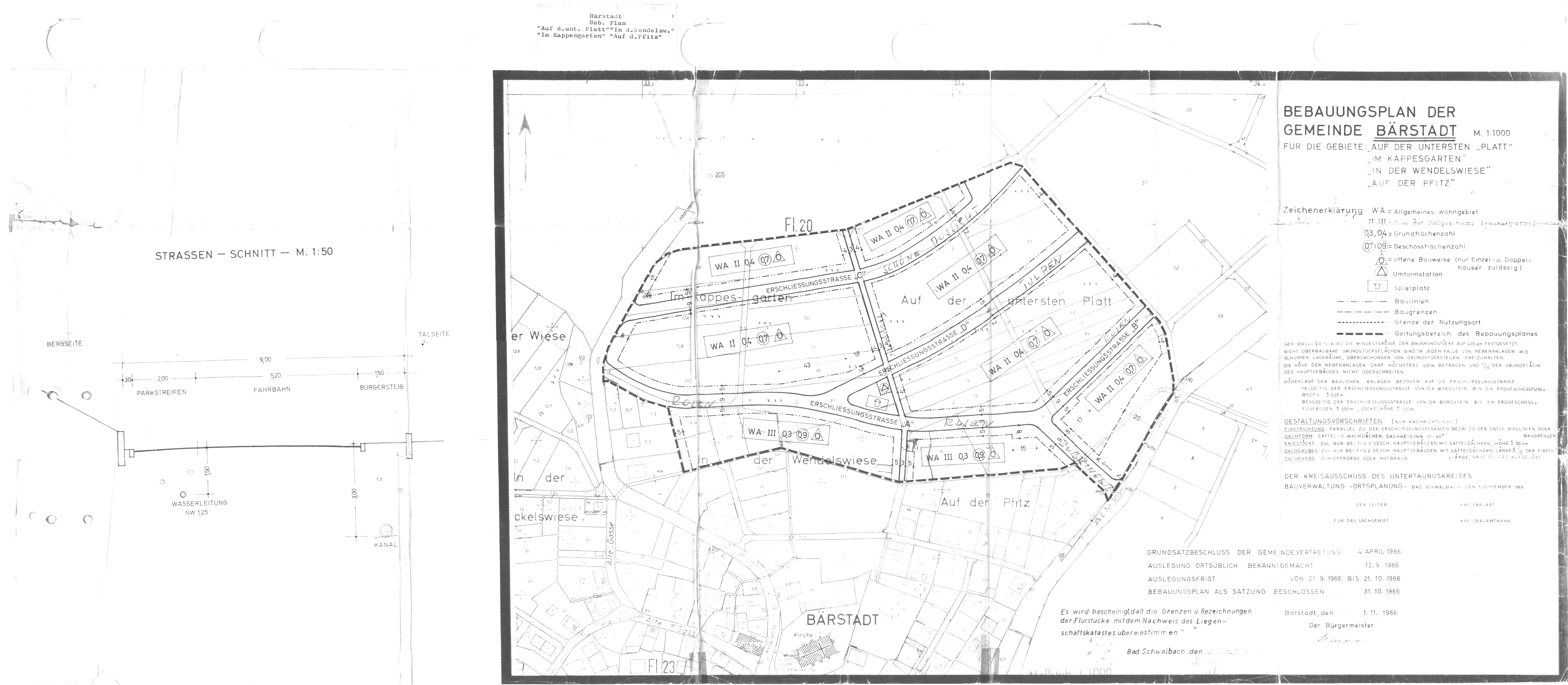| Bebauungsplan mit Bausatzung BS 01.0 u.a. "Auf der untersten Platt, Im Kappesgarten, u.a." (RP 23.01.1967): |