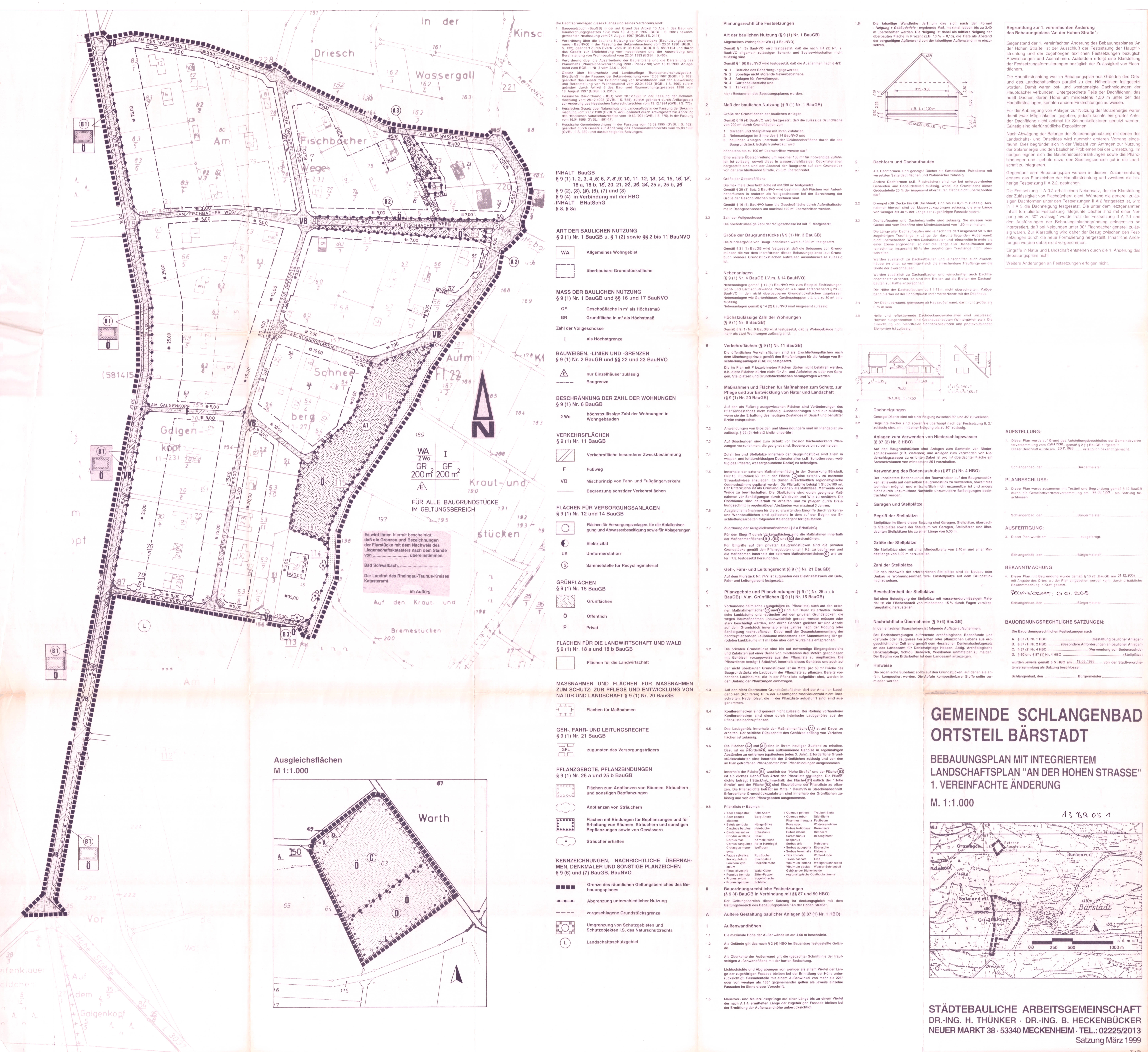 Der Bebauungsplan "An der Hohen Straße" mit Landschaftsplan (BA 05.0, Rechtskraft 24.01.1997) wurde vereinfacht geändert, die 1. vereinfachte Änderung (BA 05.1) wurde in den Ursprungs-Bebauungsplan eingearbeitet.