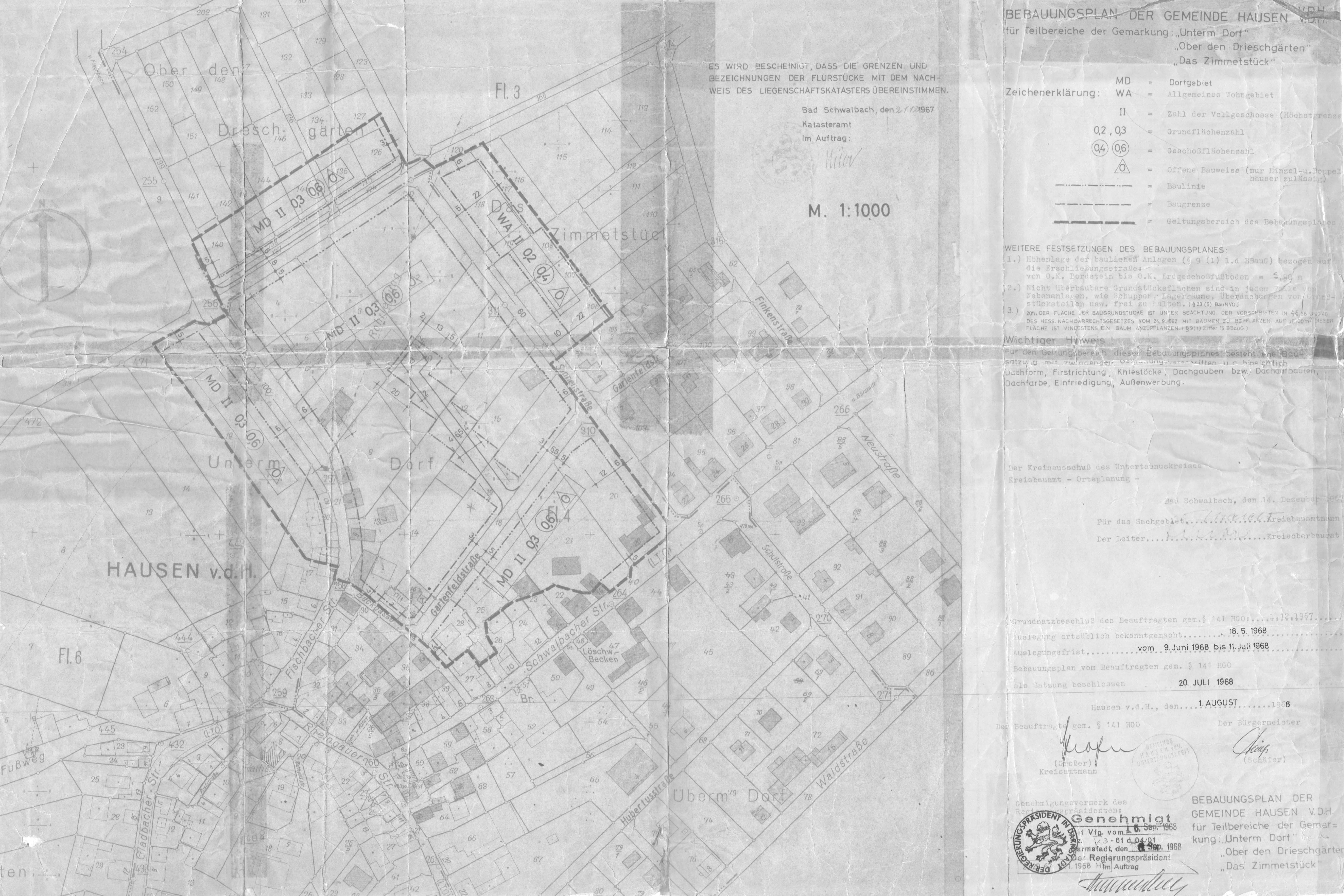 | Bebauungsplan mit Bausatzung HV 01.0 "Unterm Dorf, u.a." (RP 06.09.1968): |